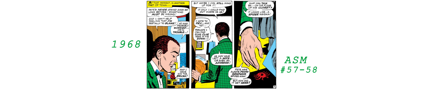 Where were we? In the last couple of issues Harry had fallen out with Peter, but then he suddenly ups and disappears. Now, in issue #57, Harry’s starting to worry and feel guilty.