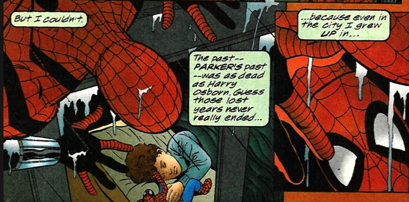 Ben remembers a time when he wanted to be a father to Normie and “keep Harry’s memory alive.” Sadly, modern-day Spider-Man never seems to have much time for Normie, even though he’s actually Peter’s godson. (At the time of writing it’s been about seven months since Harry’s most recent death; Normie’s had absolutely no mention.)