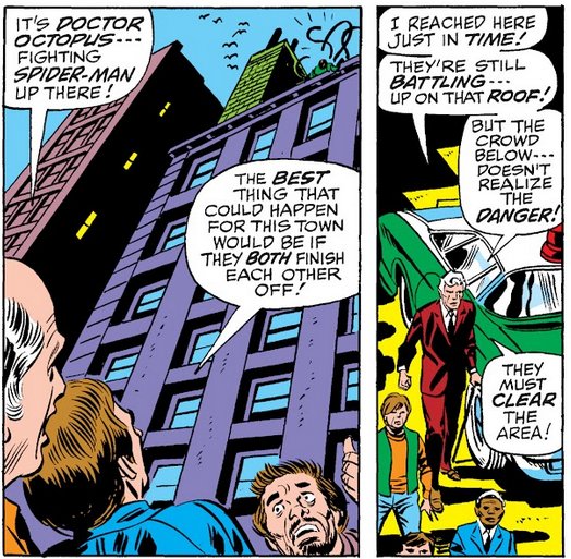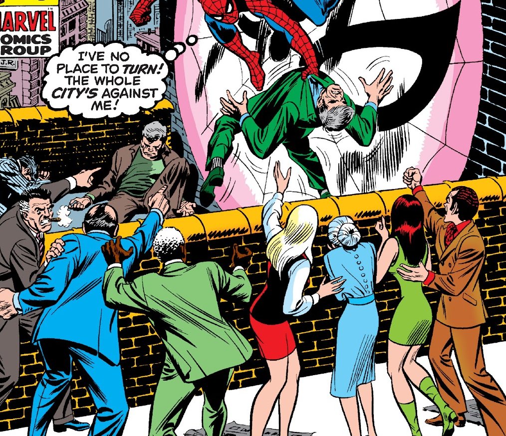 Unfortunately, the fight between Spidey and Ock dislodges some debris, and Captain Stacy ends up dying to save the life of a little boy. Oh, and because Spider-Man is Spider-Man, the watching New Yorkers blame him for it.