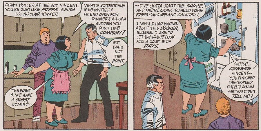 Here’s one crucial difference between Harry and Eugene (and something that was ignored in She-Hulk) – the Patilios aren’t rich. In fact, they’re on the exact opposite end of the scale from the Osborns.