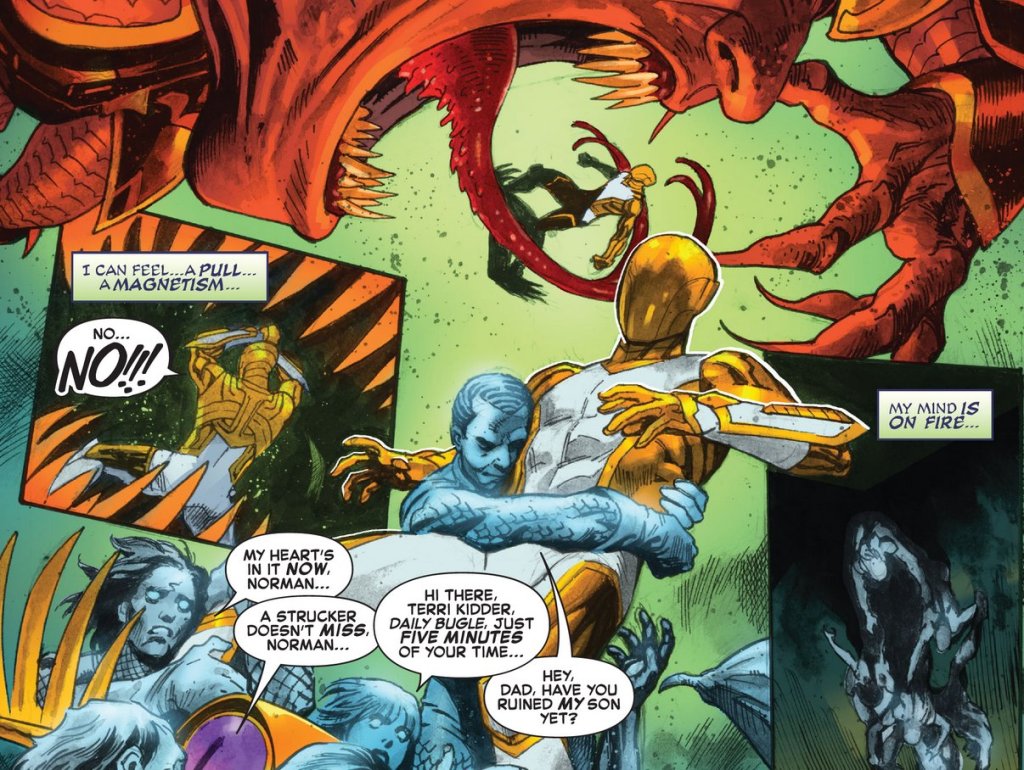 So over the past few weeks I’ve written many angry tweets and posts about how Peter and Harry and even Liz have been sacrificed on the altar of making a murdering war criminal child abuser Nice, and I still think that, but Gold Goblin is actually annoyingly good. Mostly because unlike the current ASM run it is actually presenting Norman as a monster. It’s just the other characters I’m baffled by, y’know?