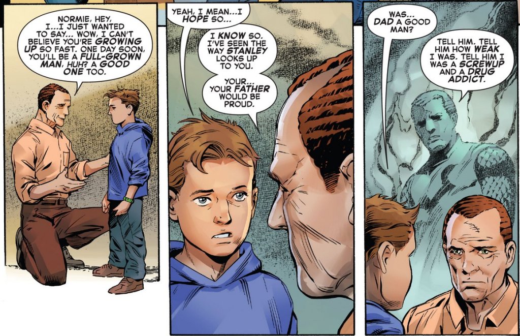 Then (after an unfortunate incident with a Spider-Man cosplayer) Normie finally starts asking his grandfather about his dad.