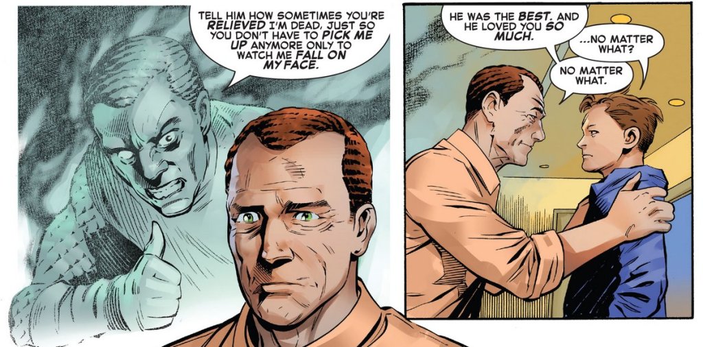 I continue to be so annoyed with how good this story is. I hate the very idea of “good guy” Norman as well you know, but Gold Goblin is doing SUCH a better job with him than ASM is. And this is the best use of ghost/illusion Harry that I’ve seen in a while. If Norman can ever truly be good, it’s only because of the memory of his son.