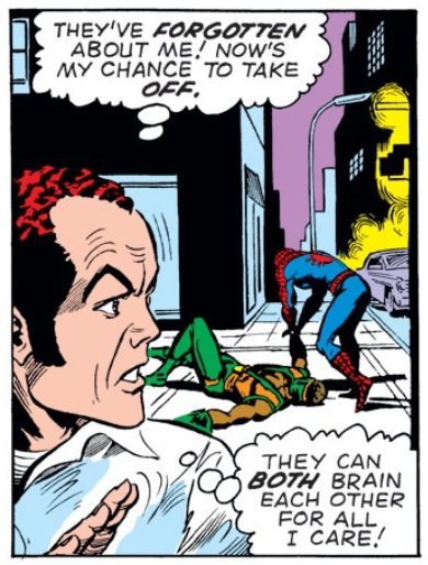 Despite his earlier “They can both brain each other for all I care!” Harry is actually grateful for Spider-Man saving him, it seems.