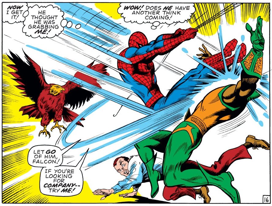 Alas, before Sam can catch Spider-Man he has to stop to break up a mugging. Redwing is on the case, though, and tracks Spider-Man down to a particular apartment. But, as well we know perfectly well, Spider-Man isn’t the only person who lives there! Here’s our boy-