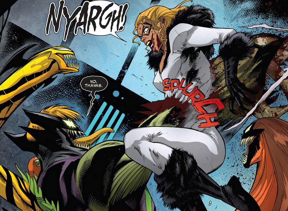 Well, hopefully this all will find its way into another comic and I can see where it all ends up. What I would really love to see is Lily and Liz working together against Kolina. (Okay, what I would really love to see is a resurrected Harry fighting his dad, but we can probably assume that won’t happen any time soon.) Depending on how it goes, perhaps the two of them can team up as superheroes, Misery and Queen Cat. After all… Misery loves company. (Yeah, I’ve been waiting a while to make that joke.)