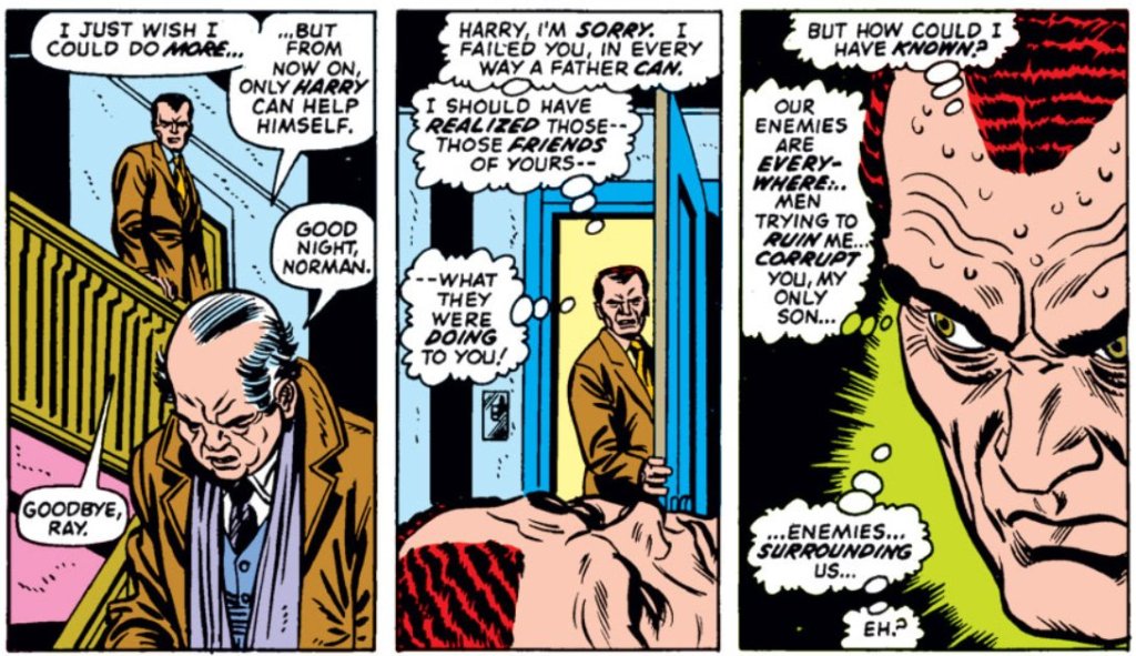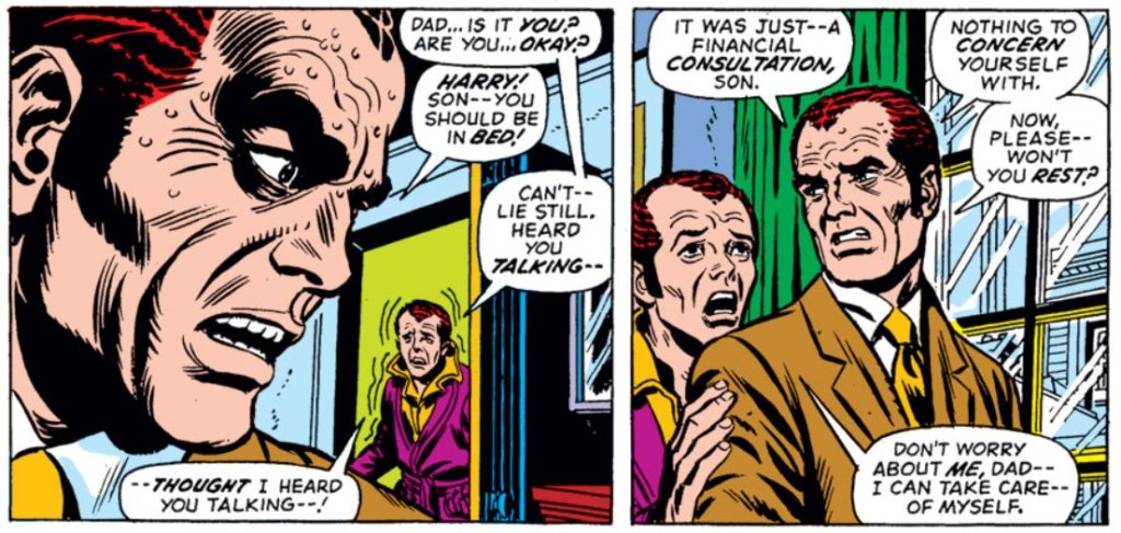 Peter worries, because he knows Norman is always just a hair’s breadth away from becoming the Green Goblin again. Poor Peter, all his worst fears are about to come true.