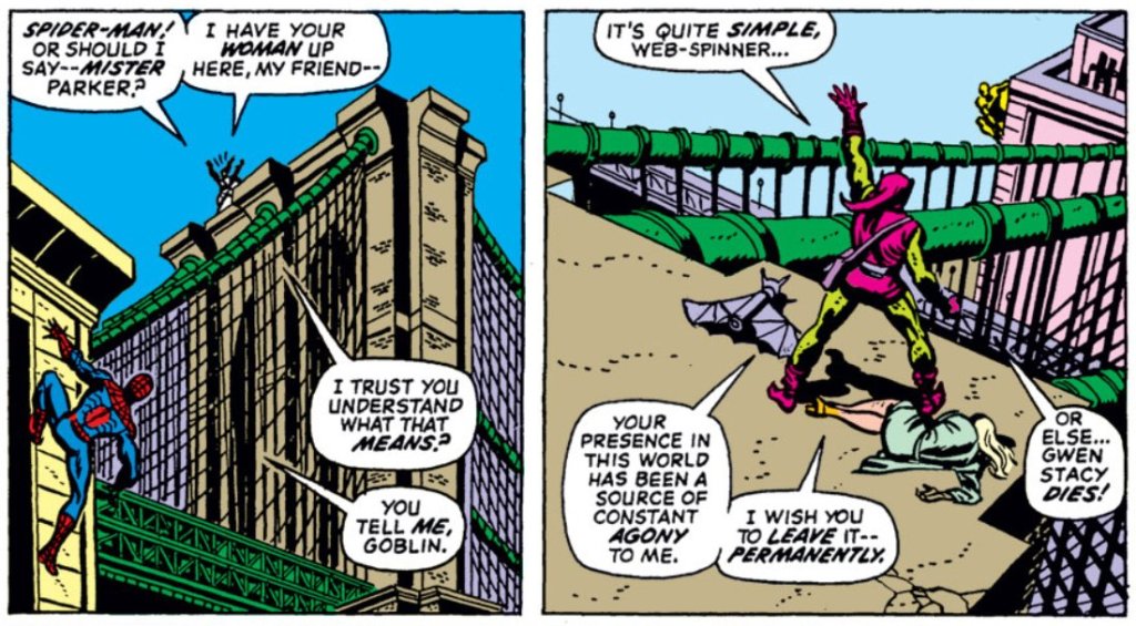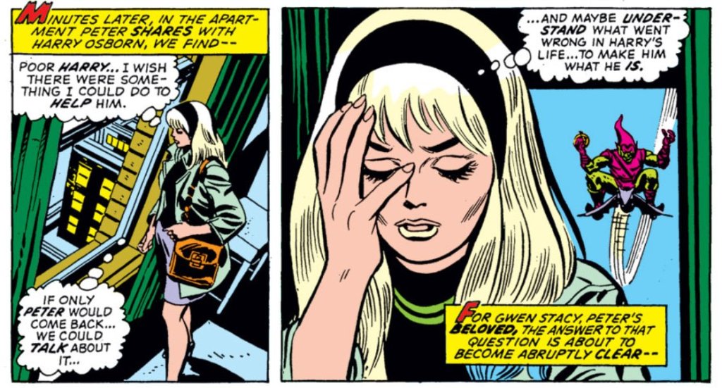 I bet no-one reading this comic back in 1973 expected what would come next. They probably assumed Peter would swoop in, rescue Gwen, send Norman to prison and Harry to rehab. But no! Instead, a tragedy is about to play out that still haunts the Spider-Man mythos to this very day.