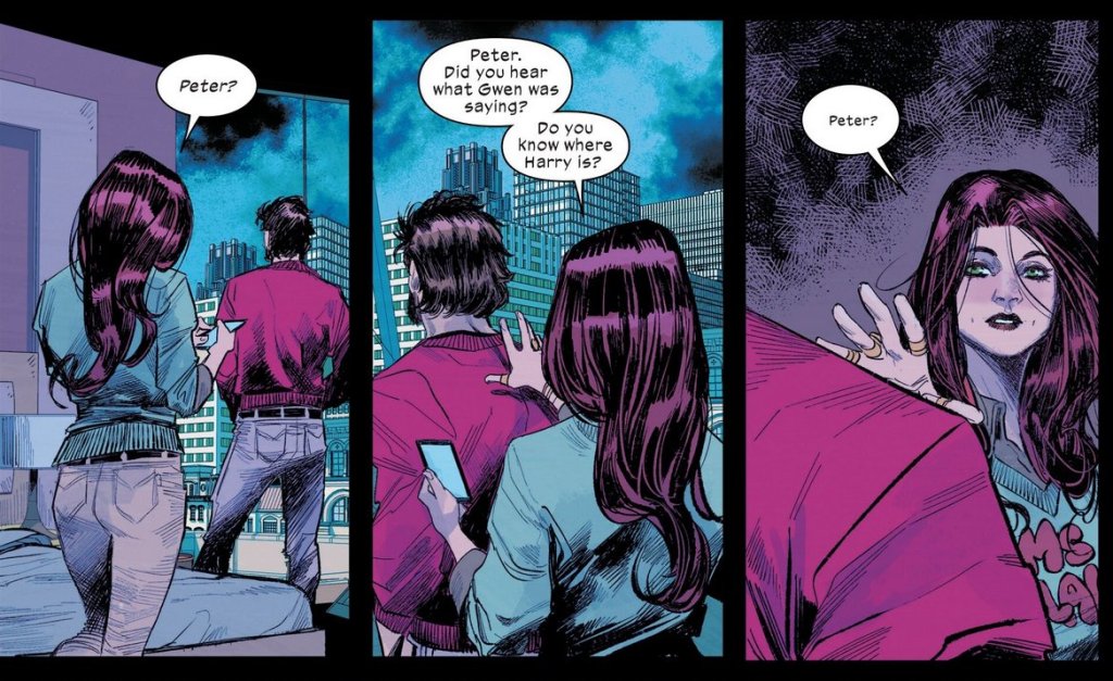 Harry is missing. MJ reaches out to Peter…