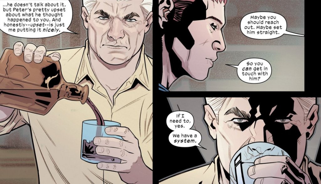 And now, back to Peter! (I’ve seen a few complaints that this last two issues of Spider-Man haven’t featured, well, very much actual Spider-Man. And I guess I kinda agree?) He gets a call and…