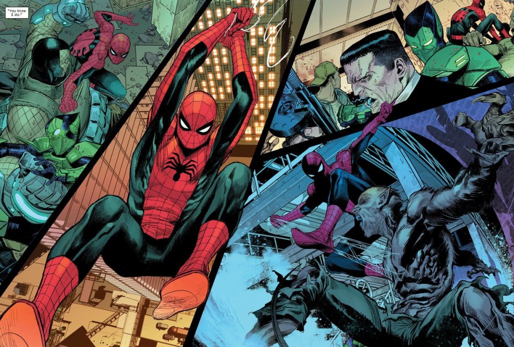 Now, the action switches to Richard Parker. He’s annoyed at being left out of the Spidey action, and he’s run away back to New York with the pico-suit to help Black Cat, who appears to be in danger. But is she?