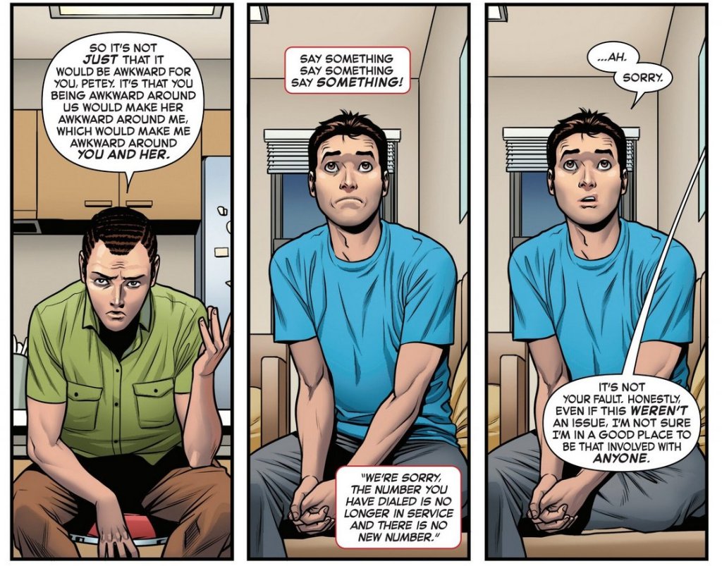Peter and MJ haven’t had sex either. Is anyone having sex around here?! And thus the conversation ends as awkwardly as it began.
