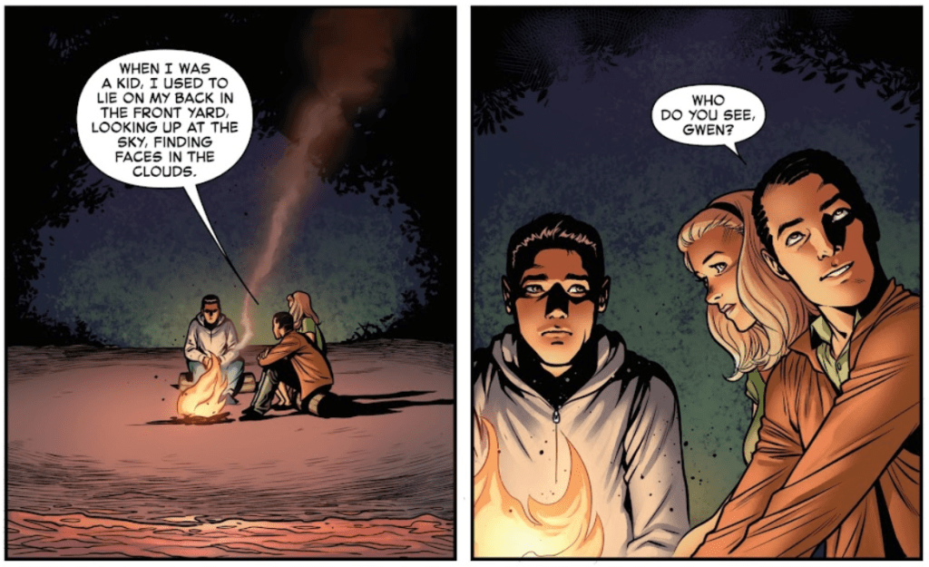 Awww. Also I love the visual foreshadowing here of Gwen wearing the same colours she died in.